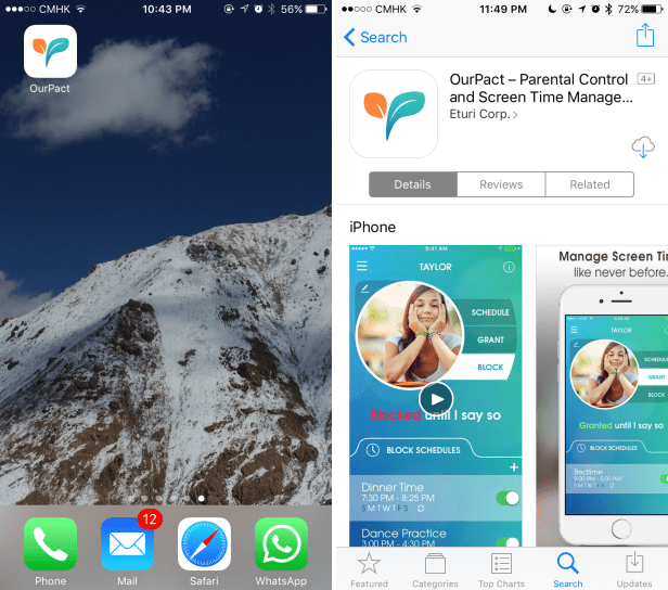 建議在能一直上網如家長的手機上安裝管理程式OurPact App,可以在App Store上找“OurPact",安裝後如下: