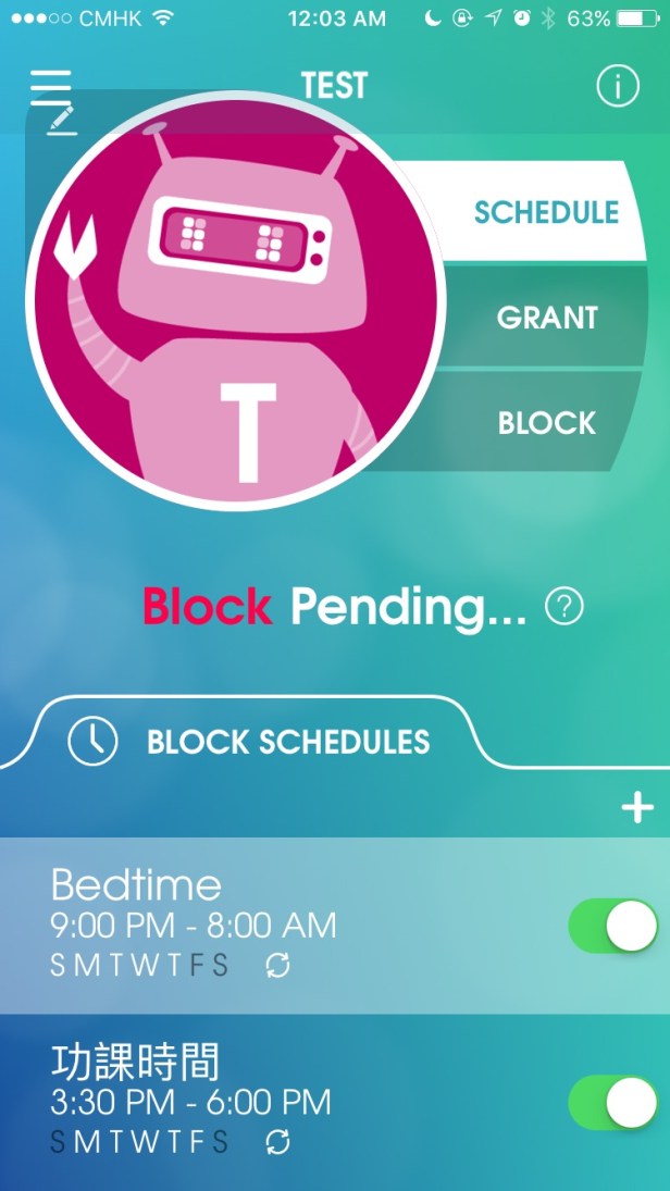 家長端的App會有提示並顯示,Block Pending或Grant Pending:
