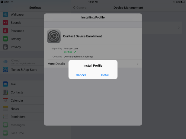 按網頁上的“PAIR”,輸入在上一步設定OurPact帳戶名稱及密碼,並按照指示一路INSTALL、TRUST、OK等: