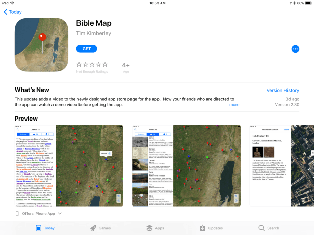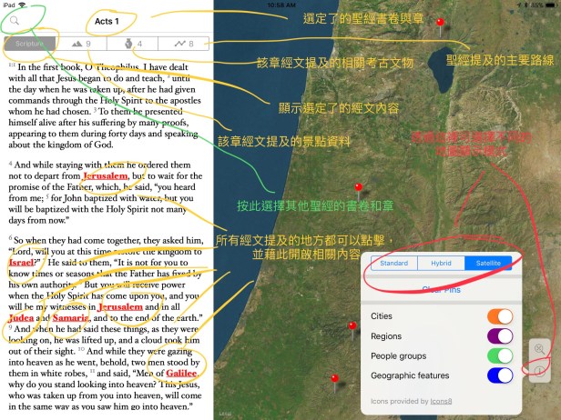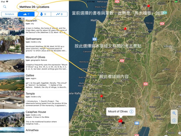 從聖地回來之後,筆者對聖經的考古、歷史等產生更濃厚的興趣,意外地在iOS App Store上找到這個免費的App,功能強大、內容豐富,筆者認為值得向大家推薦: