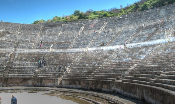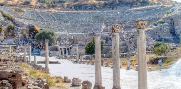 「諸神成了人形降臨」。希臘文化對「神人」的稱呼。相傳「丟斯」(Zeus)和希米斯(Hermes)二神曾過訪本區,居民因不能認出而受罸(Ovid, Metamorphoses 8.611-725)。現場的人不想重蹈覆轍。