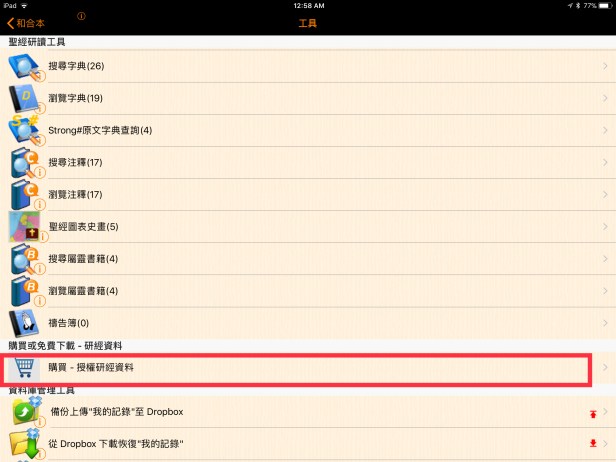筆者建議另購的是《新譯本》、ESV、NASB、NET,筆者也和開發者商討希望能加入更多的譯本,只是有些版權持有者未必願意開放給獨立的開發者,希望當更多人使用Handy Bible後會改善這種情況。
