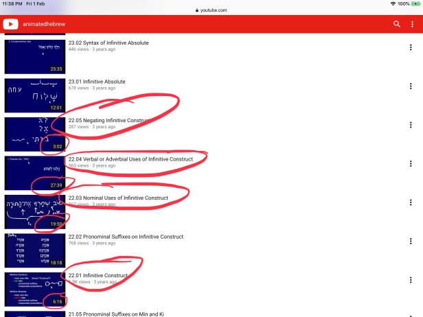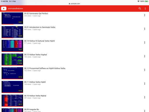 有些重溫有關某些weak verb如hollow verb或geminates verb的視頻,更是被細分成只有數分鐘一個的單元。對於想重溫希伯來文文法的學生來說真的十分方便。